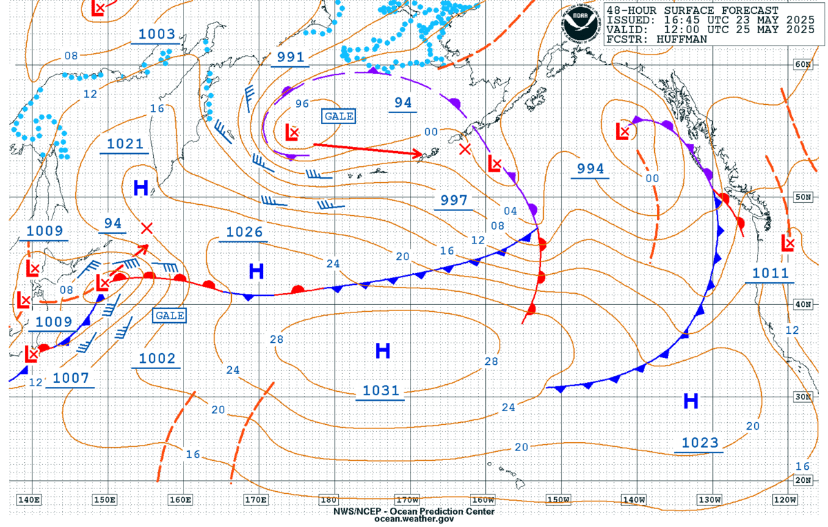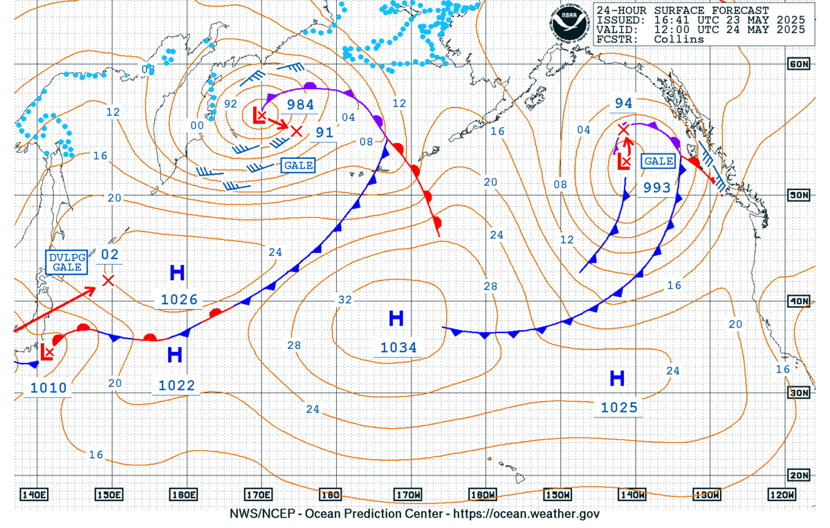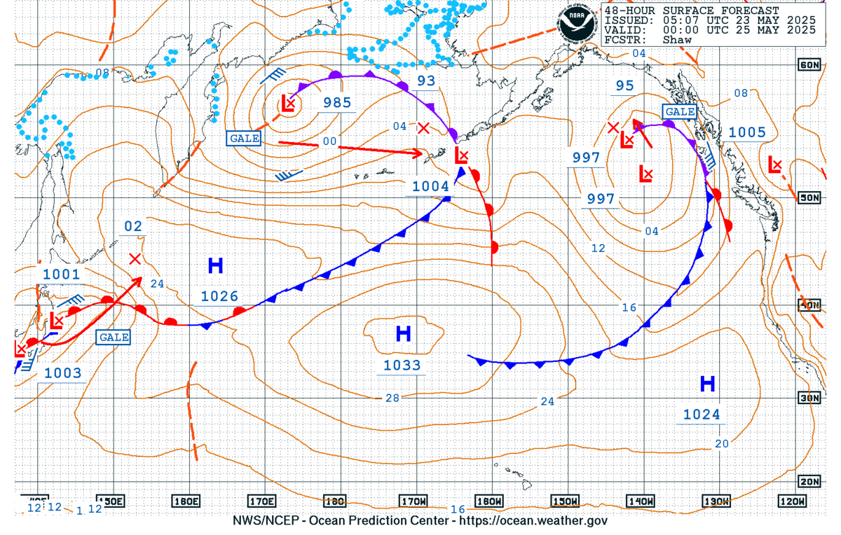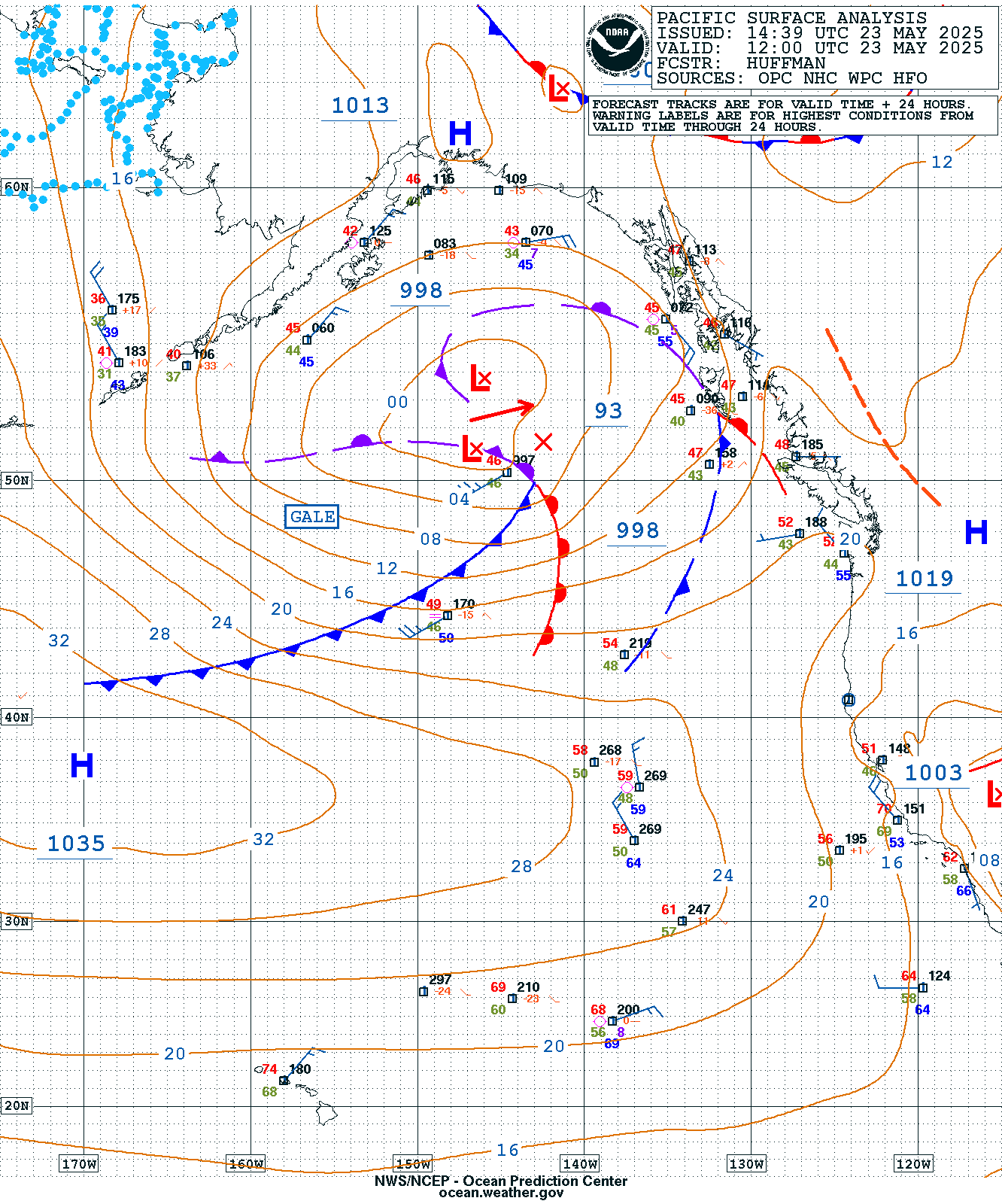 The Saturday 0500 Surface Frcst Chart again shows quite a gap over the Pacific NW with the low in the Gulf of Alaska moving to the NNW.