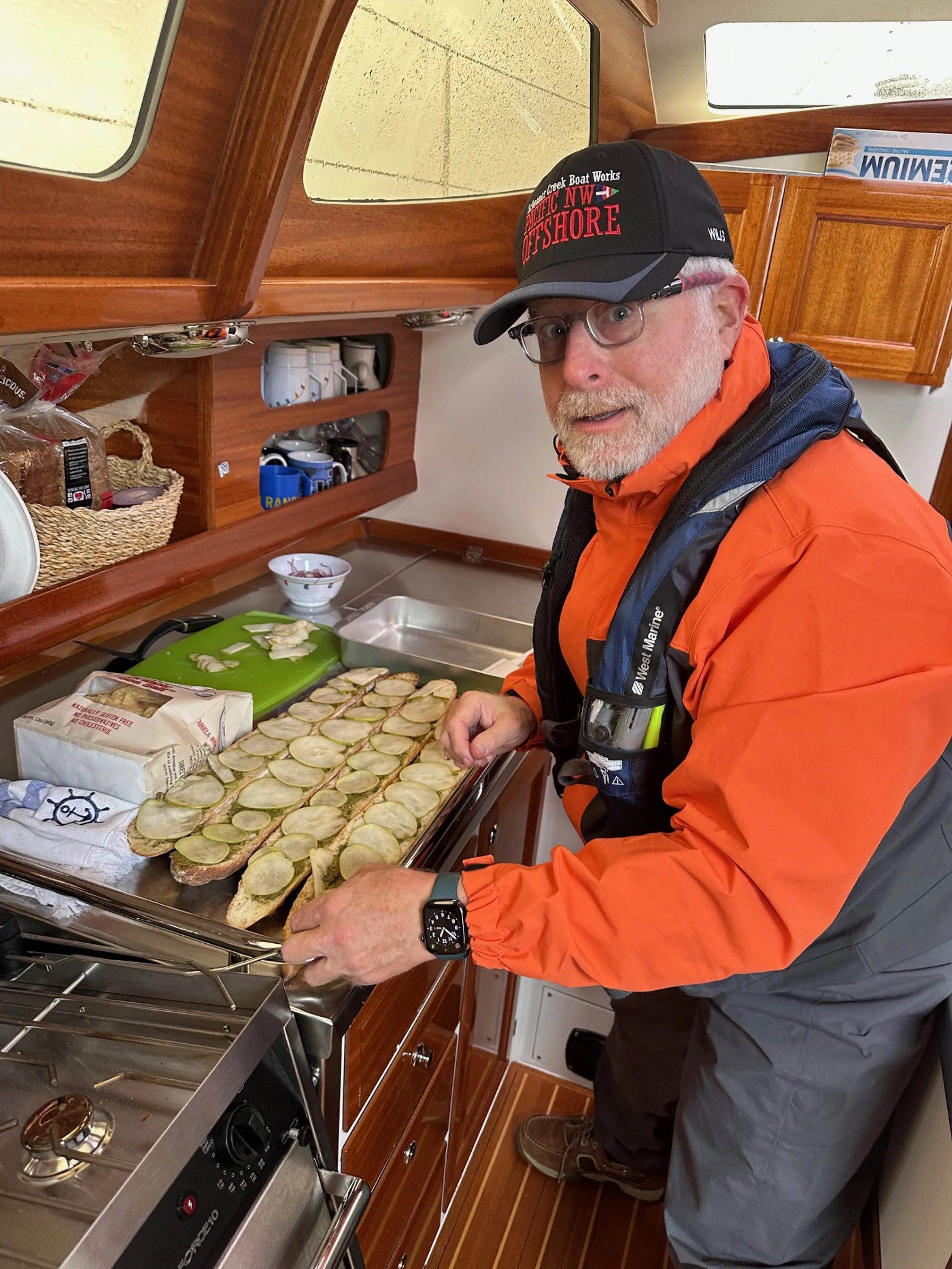 Entering the Straits close to Cape Flattery was a winning move for many as daylight appeared Friday in a 20 knot SE breeze which continued to clock into an easterly in the Straits. Conditions moderated all Friday as progress was made to the east and the seas went flat and the winds calm in the late afternoon Friday while approaching Sooke Harbor. This is about when we noticed Absolutely hang a right into Port Angeles and see Free Bowl Of Soup approach Race Rocks and the finish line.