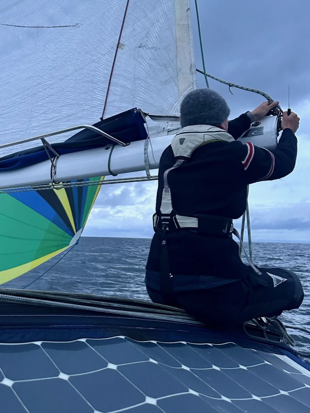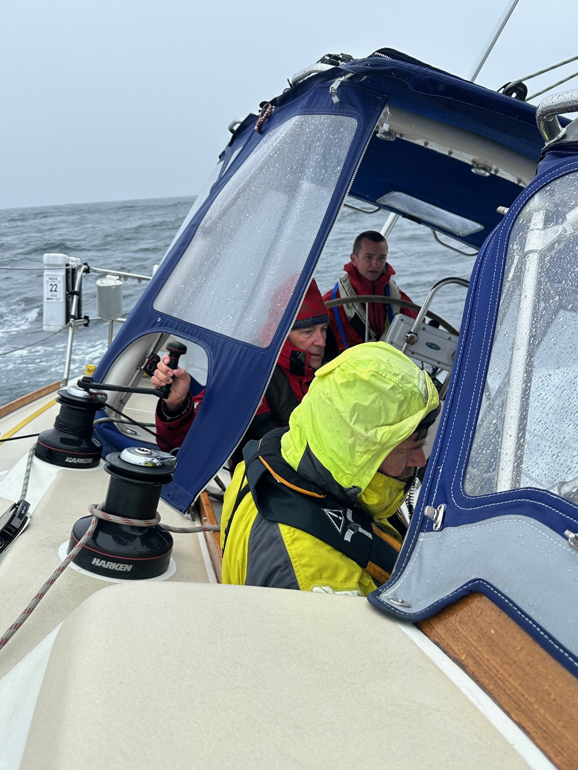 Conditions built steadily all day and the wind backed steadily. As the fleet approached Cape Flattery, a large mature swell from the NW confused the wind driven SW waves making for some breaking 6 to 10 foot waves and winds to 25 knots from the South. Reducing sail and driving was challenging.