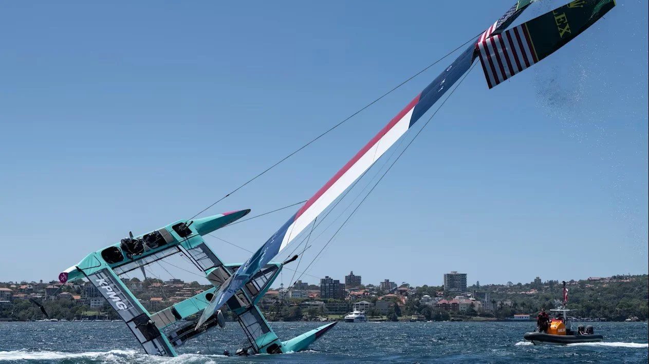 I thought this picture of team USA capsizing while being towed to the race course in Sydney fitting for my self inflicted failure.